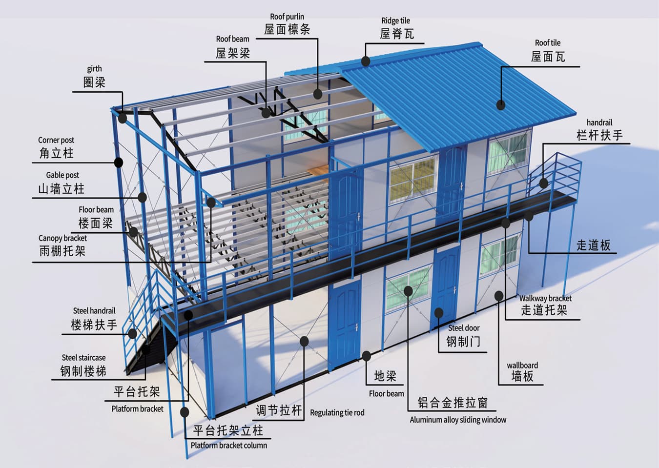 轻钢框架结构可承受7-8级地震和10-12级台风。